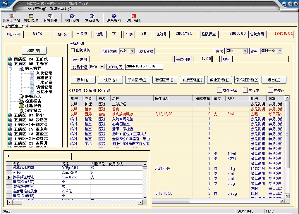 是由全国著名的朱莉、吴乃川教授及多位医学专家进行需求分析,依托复旦大学资深教授及复软科技的技术力量,研制开发的一套“以病人为中心”,集信息流、数据流、物流、资金流为一体,功能全面的医院信息管理系统(HIS)。 豪华自费版本提供中、英等多语言版本,方便外国医生操作,可自定义收费,对不同病人进行不同的收费,更有完善的会员管理功能,方便医院管理,是高端医院的最佳选择。